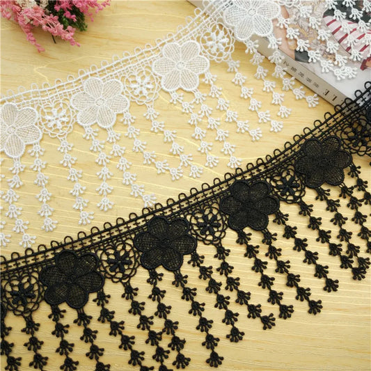 15 Yards 85MM Tassel Water Soluble Embroidered Flowers Lace Ribbon
