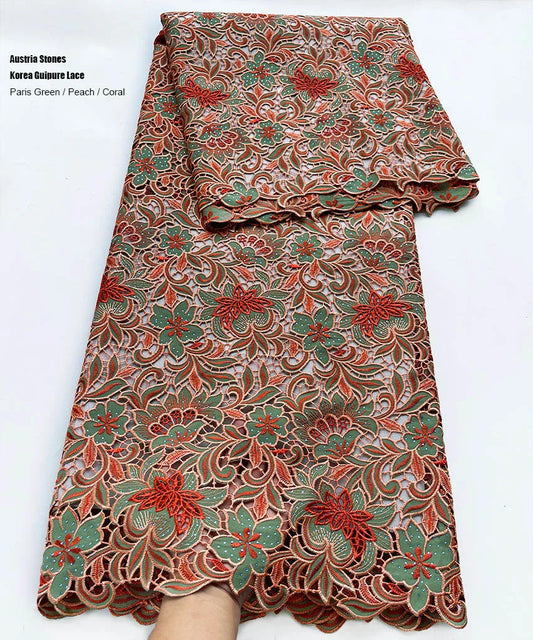 Skin Friendly Embroidered African Cord Lace-Soft Neat Guipure Fabric 5 Yards