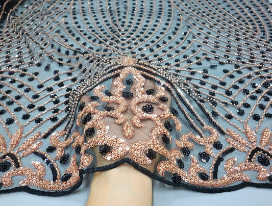 African Lace Fabric-French Sequins Embroidered Beaded Tulle Mesh Fabric