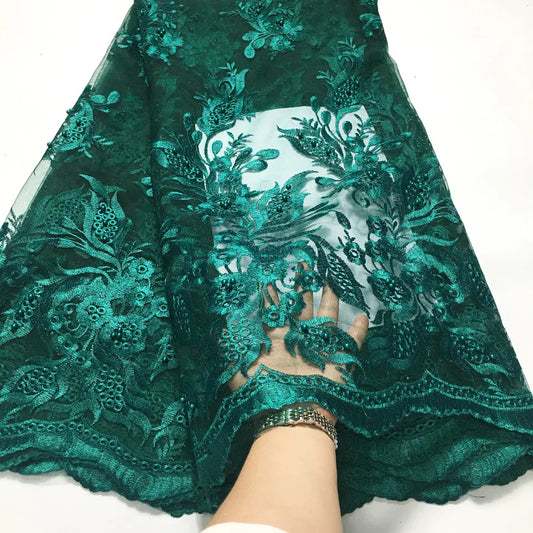 African Lace Fabric-Nigeria Embroidered Beaded Lace-5 Yards