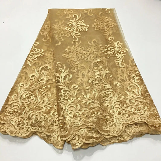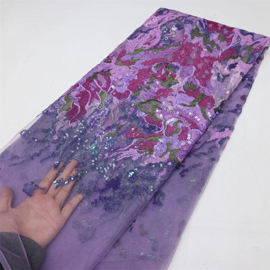 5 Yards Nigerian Sequined Embroidered Lace Fabric-French Tulle Mesh for Wedding Party Dress