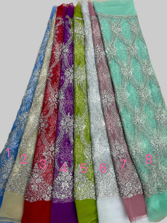 African Lace Fabric-Beaded Nigerian Lace Fabrics for Wedding Dresses