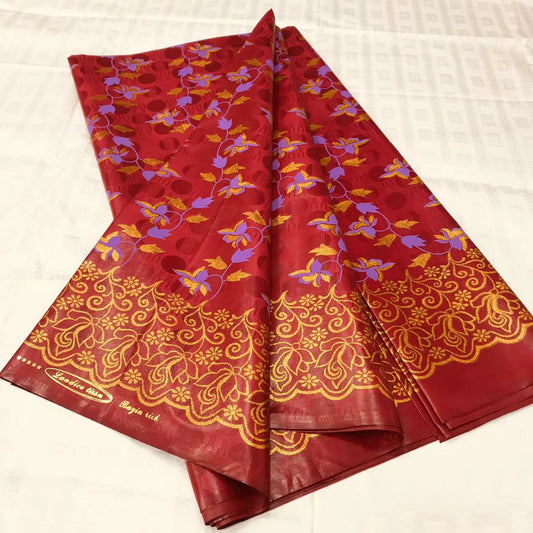 5+2 yards Purple African Bazin Riche Fabric with Scarf