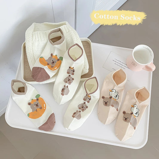5 Pairs Bear Socks: Cotton Breathable Soft Japanese Casual Socks