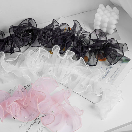 Snow Yarn Lace Ribbon With Shiny White Beads