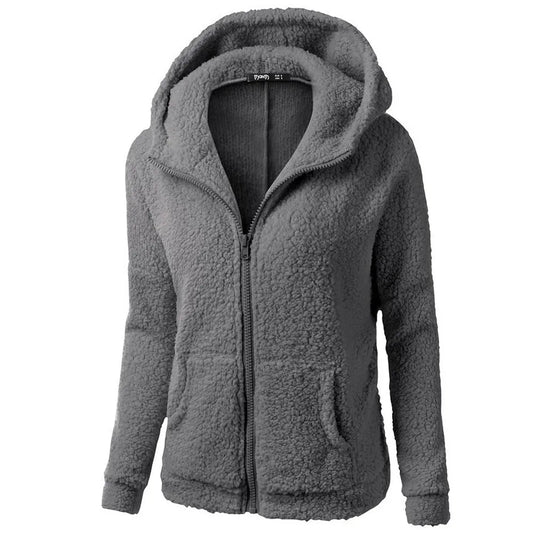 Women's Winter Fleece Hooded Overcoat, Loose Solid Color