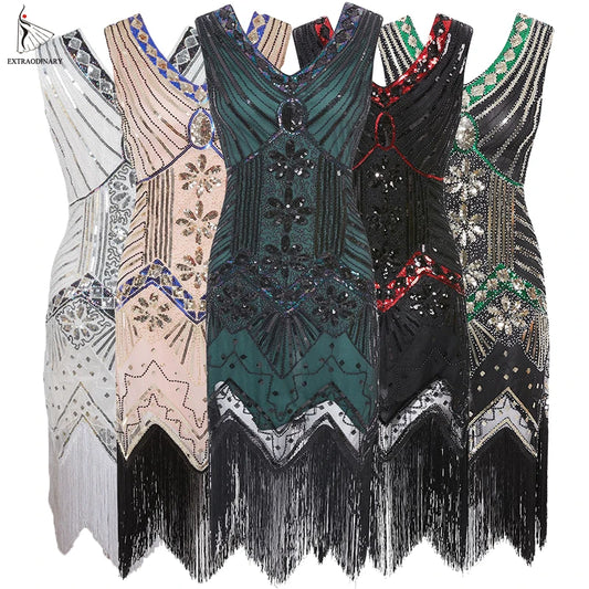 Women's Vintage Great Gatsby Dress-Sequins V-Neck Tassels Bodycon Beaded Party Dress