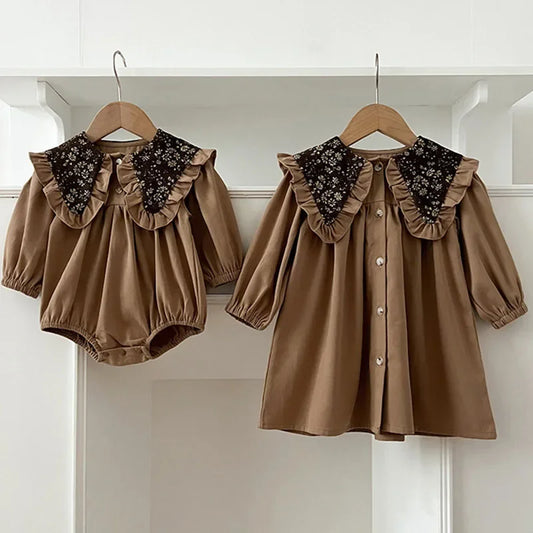 2-6Yrs Girl Party Dress Long Sleeved Cotton Embroidery Splicing Romper