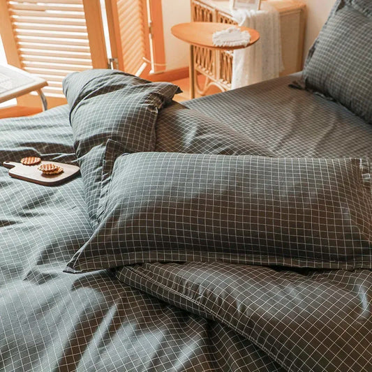 Black & White Checked Printed Bed Set, Duvet Cover Pillowcase & Bed Sheet-No Filler