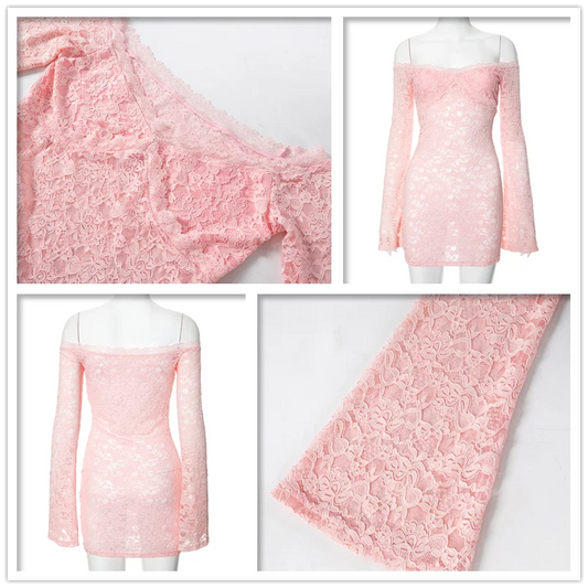 Lace Party Dress Women-Off Shoulder Mini Slim Bodycon Dresse