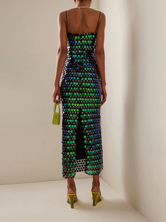 Spaghetti Strap Cocktail Dress- Women's Sequin Backless Party Dress