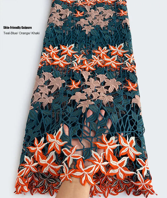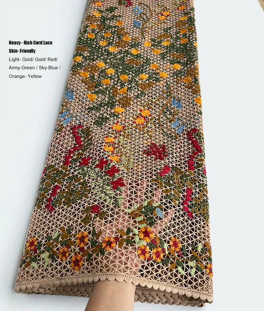 Skin Friendly Embroidered African Cord Lace-Soft Neat Guipure Fabric 5 Yards