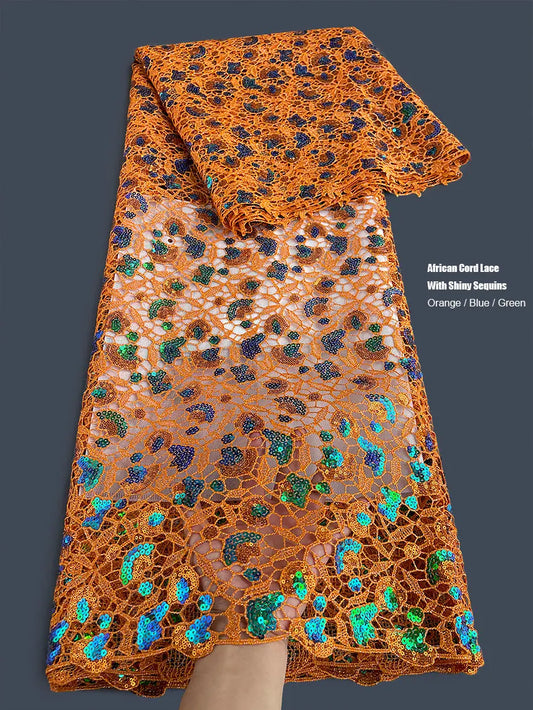 Embroidered Cord Lace with Sequins-African Guipure Fabric