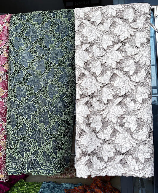 Guipure Lace-Fine Cotton Textured African Cord Lace Cupion Fabric 5 Yards