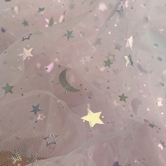 100x150cm Soft Tulle Fabric Iridescent Star & Moon Mesh