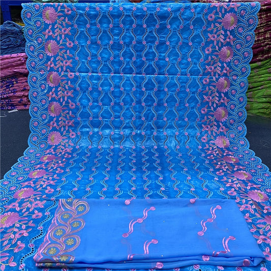 5 + 2 Yards With Scarf African Bazin Riche Fabric Brode Embroidery