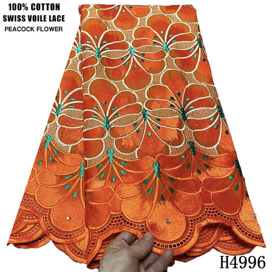 Blue Swiss Lace Fabric, Embroidery Stones, 100% Cotton Swiss Voile Lace