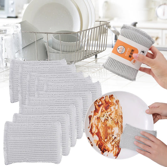 12/4Pcs Double Sided Dishwashing Sponge, Silver Wire Cleaning Rags