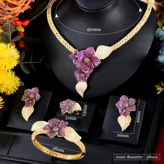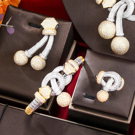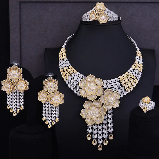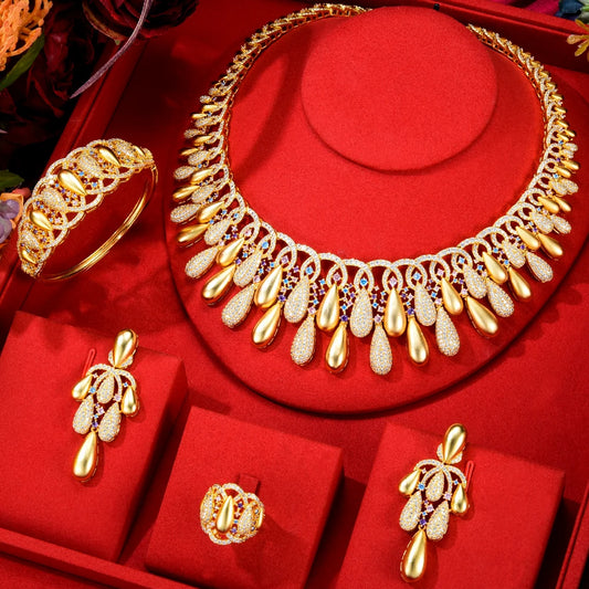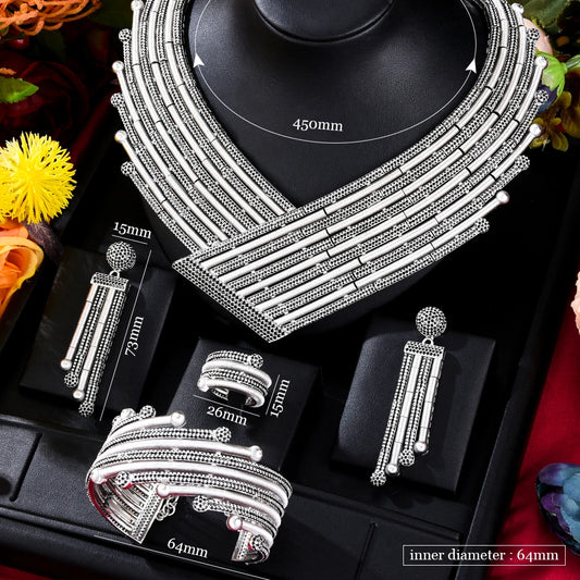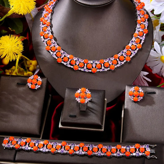 4-Piece Luxury Cubic Zircon Necklace Jewelry Set for Women