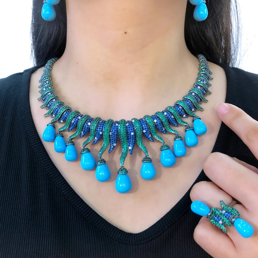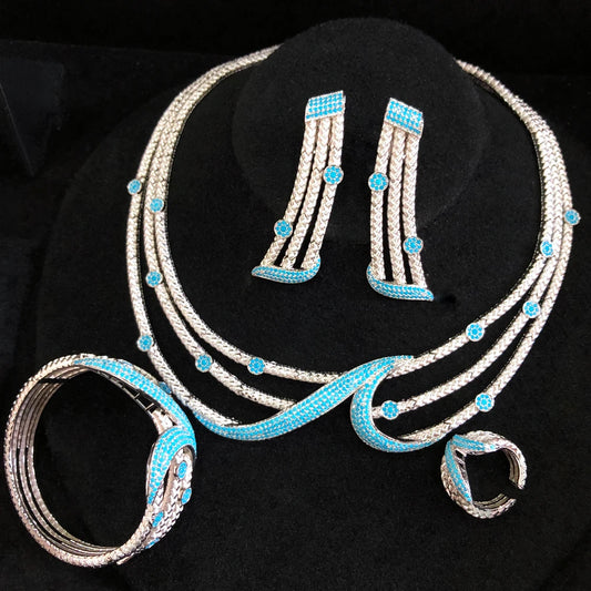 Turquoise Drop Luxury 4-Piece Jewelry Set: Necklace, Bangle, Earrings, Ring