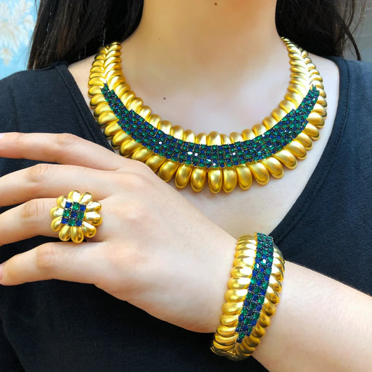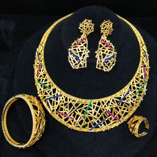 Elegant African/Indian Jewelry Sets with Zircon Crystal for Weddings and Parties