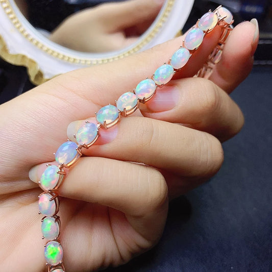 Silver Plated White Fire Opal Stone Link Bracelet - 6*8mm
