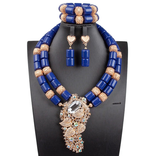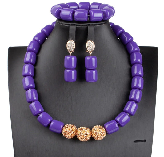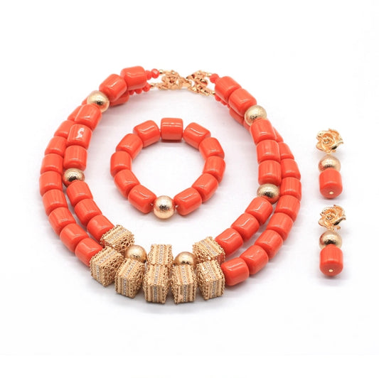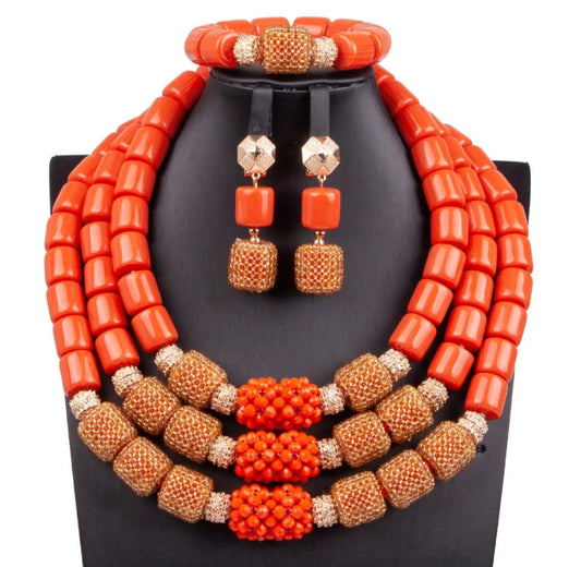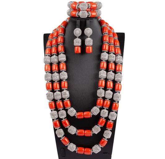 3 layers Imitation coral statement necklace, bracelet and earrings set