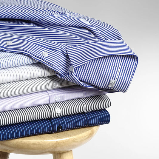 Men's Formal Shirt-Long Sleeve Solid Color Striped Anti-Wrinkle Shirt S-4XL