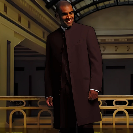 Men's Long Jacket Pants Vest Three-piece Set For Wedding Groom