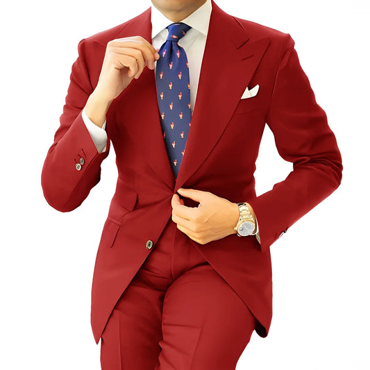Men's Business Suit Set Regular Fit Tuxedo Jacket + Trousers