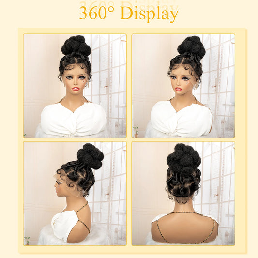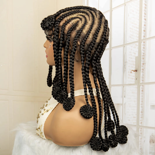 Synthetic Braided Wig with Buns-Full Lace Cornrow Braids Wig for Black Wome