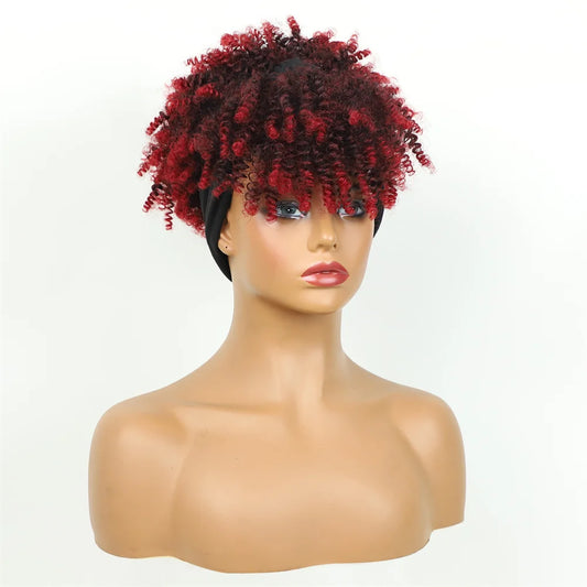 Headband Wigs for Women-Synthetic Kinky Curly Wigs with Scarf