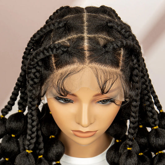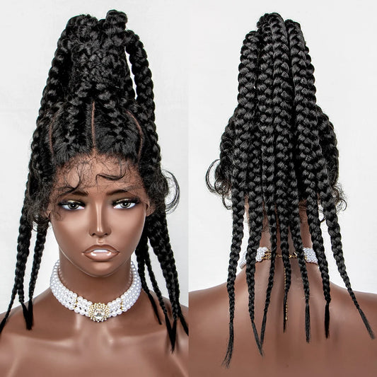 Synthetic Braids Wig with a Bun-Full Lace Knotless Box Braided Wig