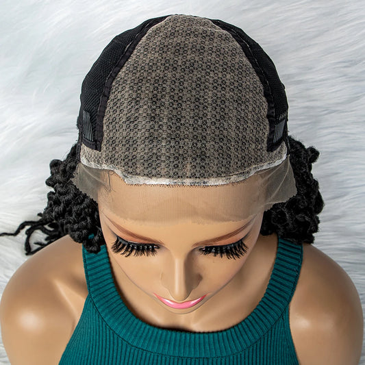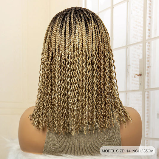 Short Bohemian Box Braids Braided Wig-Full Lace Synthetic Curly Hair with Baby Hai