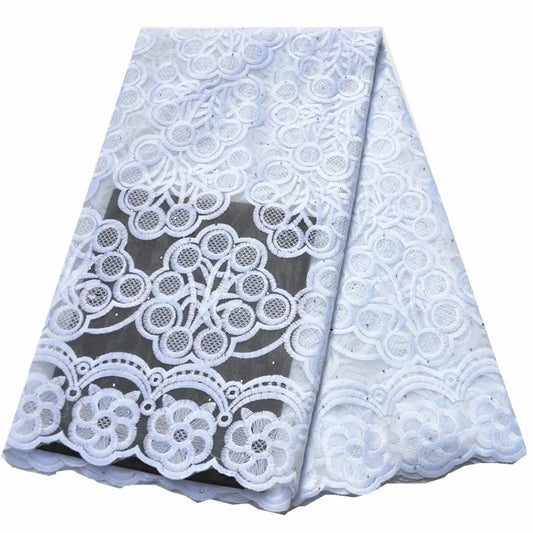 White And Black Lace Fabric-African Tulle Lace Fabric-5 Yards