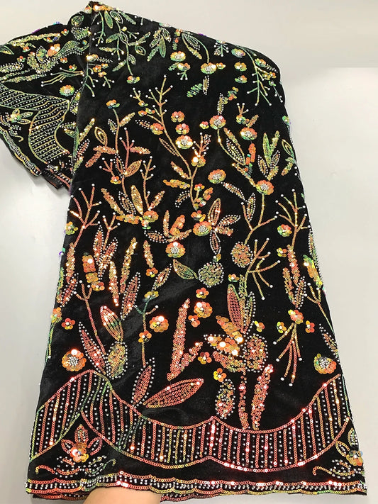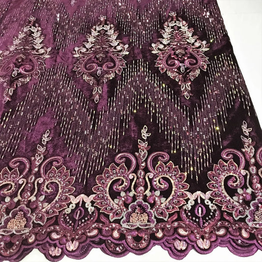 Velvet Sequins Lace Fabric-Heavy Beaded Pearls Lace Fabric