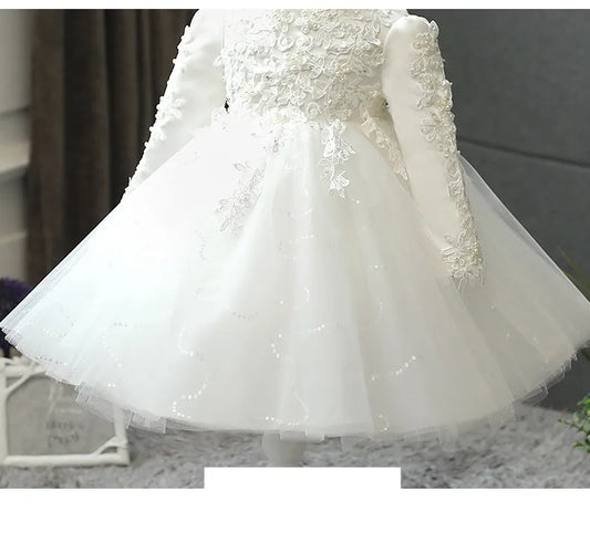 Sequin Tulle Baby Girl Dresses-Birthday Dress Long Sleeve-Baptism Christening Gown