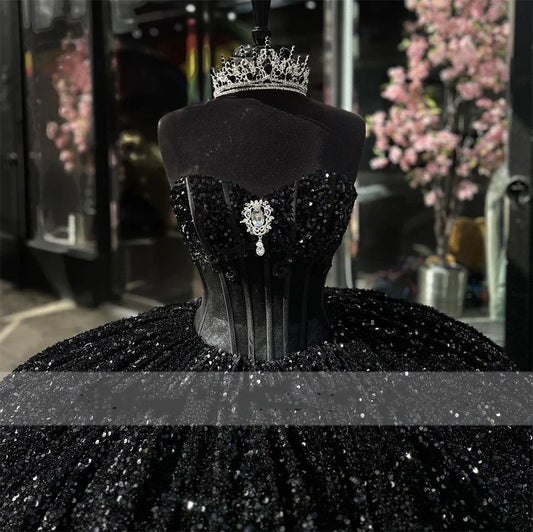 Glitter Tulle Sweetheart Ball Gown-15 Year Old Quinceanera Beaded Customized Dress