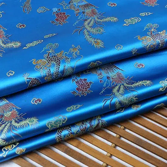 Tissu Jacquard Brocart Dragon Phénix au Mètre - Rouge Soyeux pour la Couture de Cheongsam Kimono