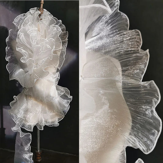 1Yard Mermaid Pleated Magic Wedding Wave Lace Fabric Width 15CM
