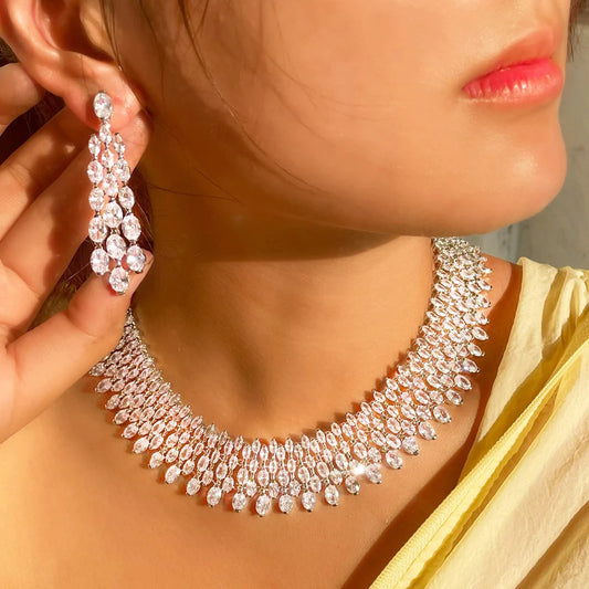 Sparkling Cubic Zirconia Big Bridal Choker Necklace Jewelry Set for Women