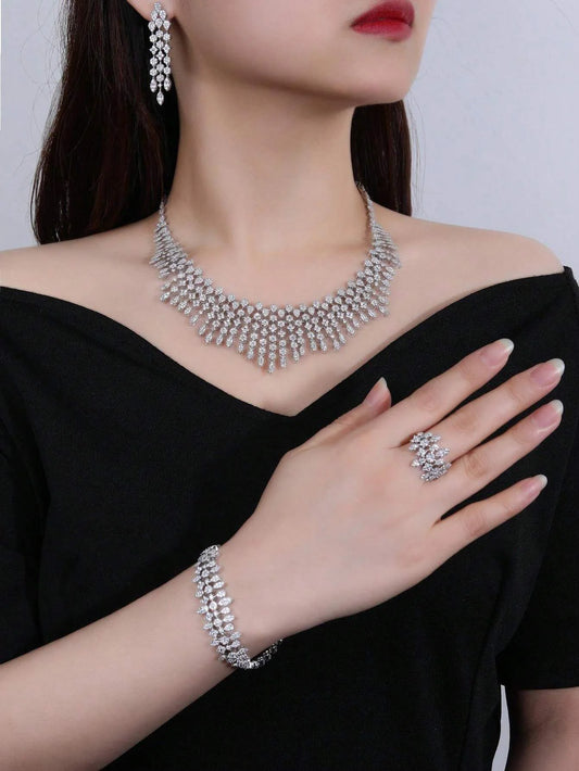 4pcs Cubic Zirconia Luxurious Jewelry Set