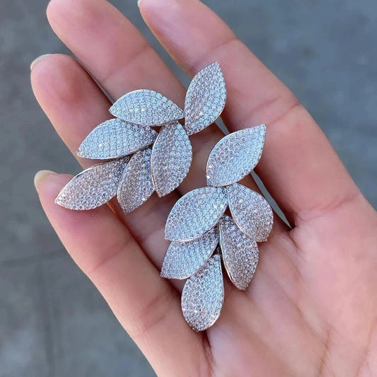 White 5A CZ Zirconia Leaf Earring Necklace Jewelry Set
