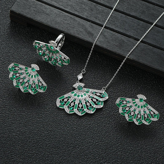 Sparkling Geometric Hollow Out Fan-shaped Cubic Zircon Jewelry Sets