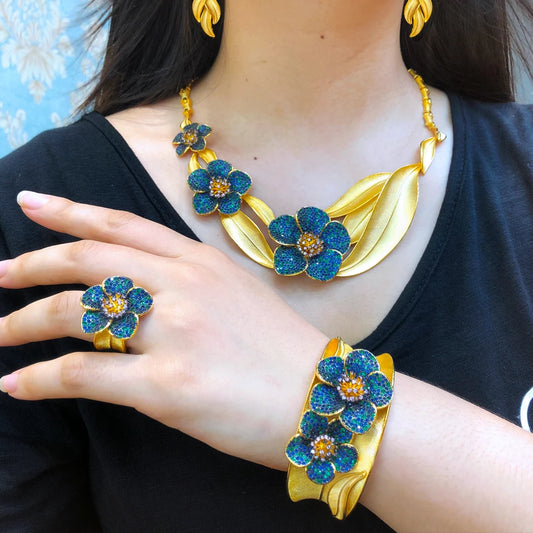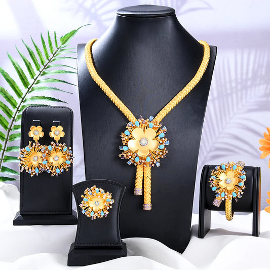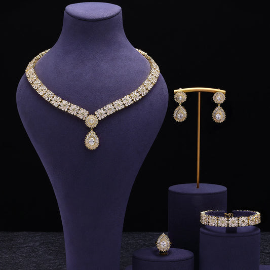 Ensemble de bijoux de mariage élégant de style Dubaï - Collier, bracelet, boucles d'oreilles et bague - Haute qualité pour femmes