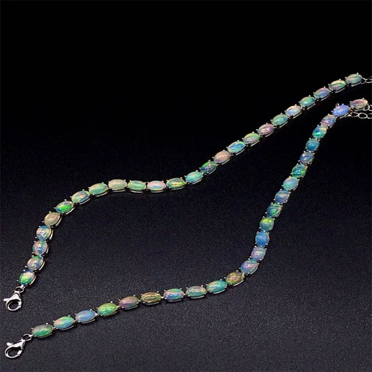 Bracelet Opale Colorée - Bijoux Fins en Argent Sterling 925 pour Femmes, Collection Mariage, Pierre 4*6mm, 24 Pièces