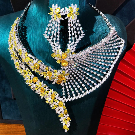 Ensemble de bijoux de mariage en zircone scintillante - Collier et boucles d'oreilles exquis, parfaits pour les fêtes et les occasions spéciales