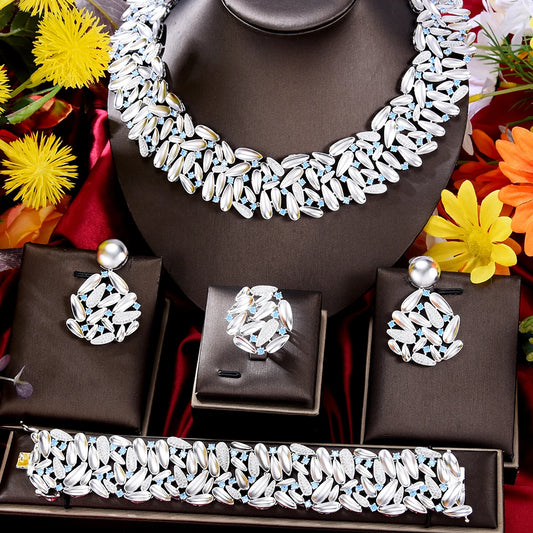 Ensemble de bijoux de luxe pour mariée, 4 pièces, pendentif, boucles d'oreilles, collier