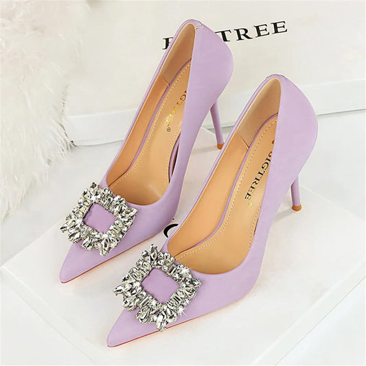 Women's 10cm High Heels Bling Crystal Rhinestone Buckle Pumps