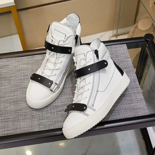 Leather White Comfortable Metal Buckel Loafers For Men-Casual Party Shoes
